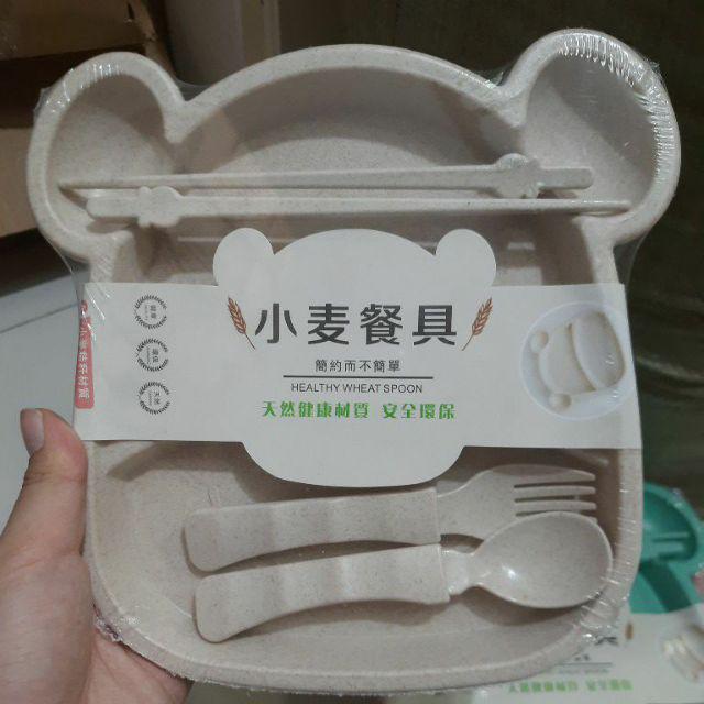Harga Piring set wheat gandum ( No Box ) / piring anak gandum / piring kepala bear lucu / piring sehat