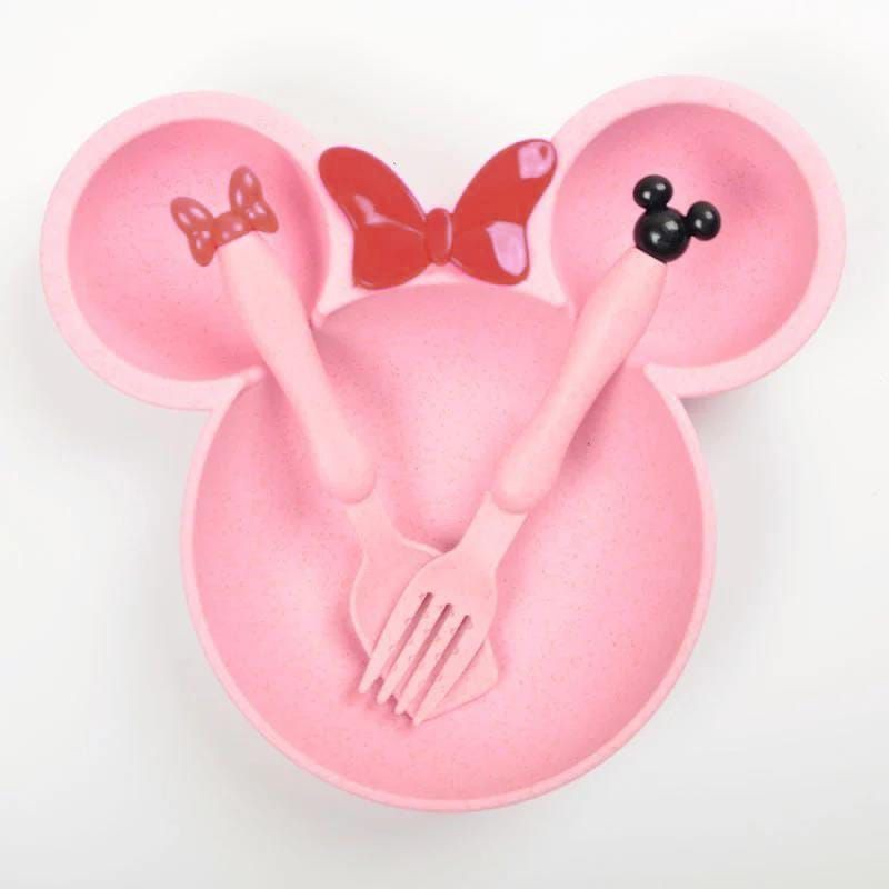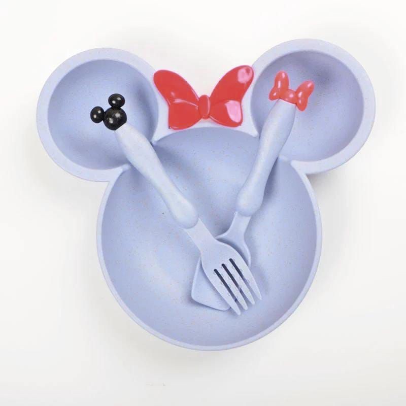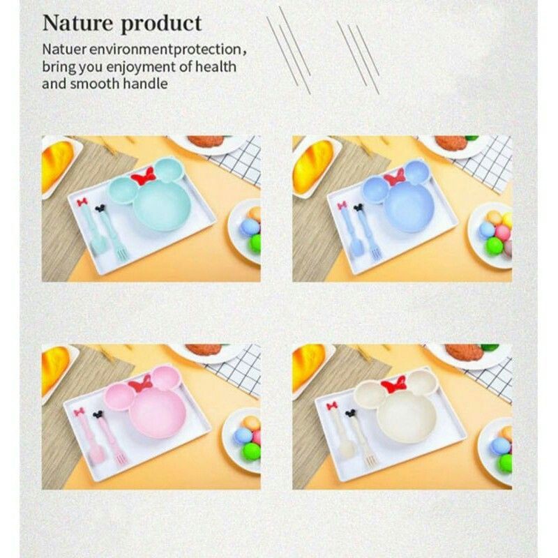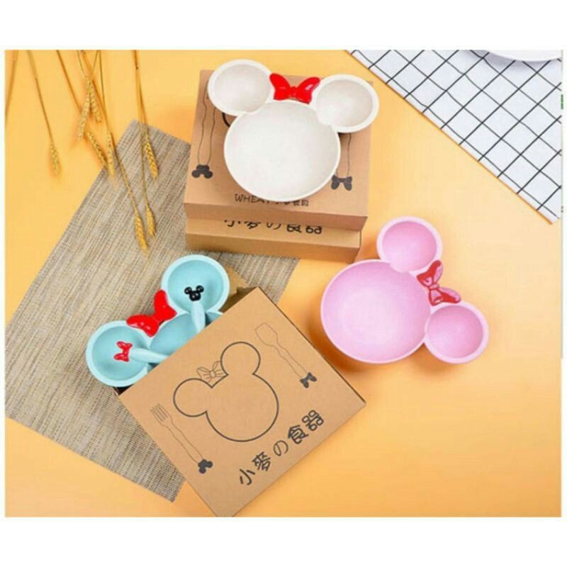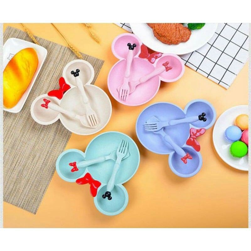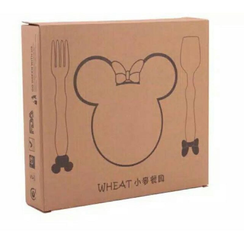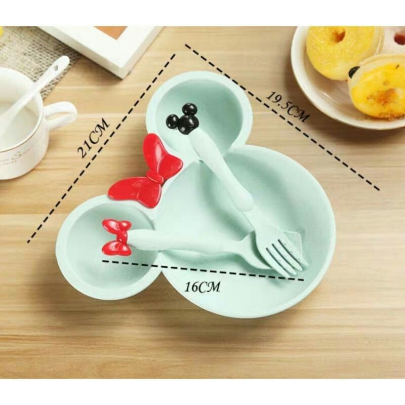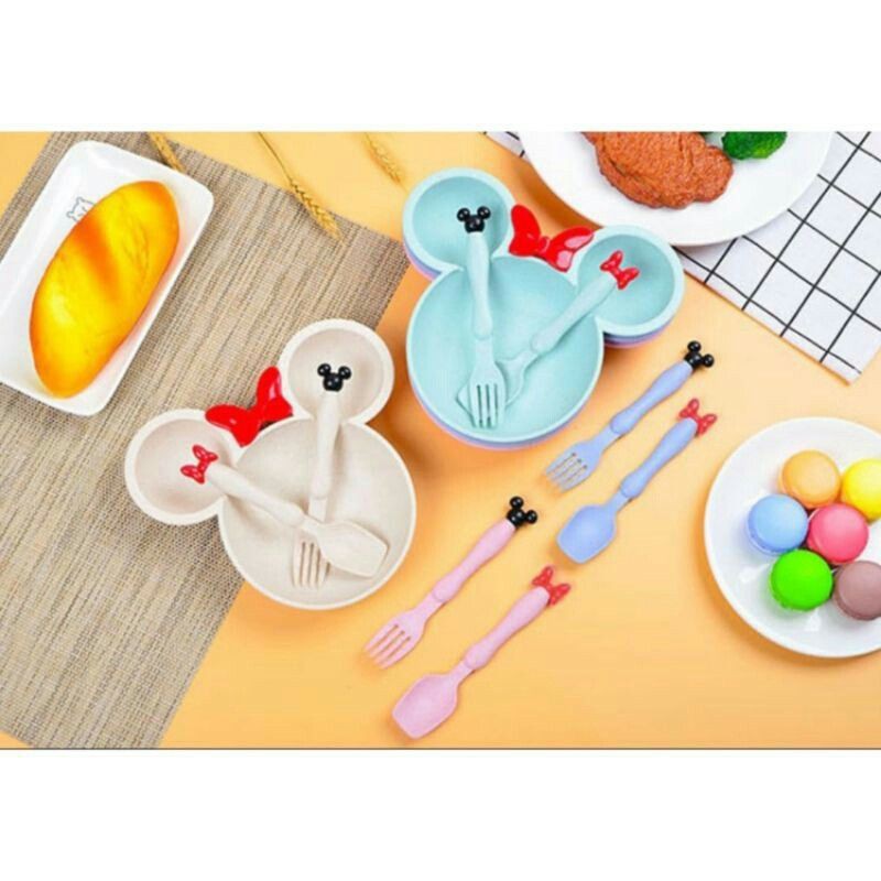 Harga PMM100 Piring Makan Anak Set Mickey Minnie, Piring Garpu Sendok Bahan Wheat Kuat Termasuk DUS