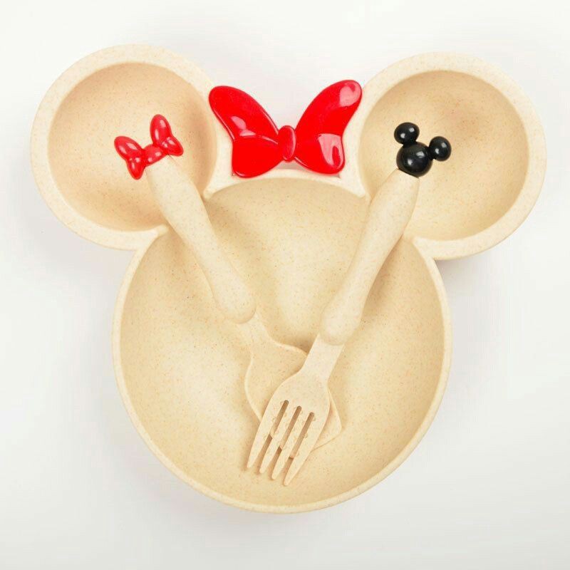 Kekurangan - Kekurangan membeli PMM100 Piring Makan Anak Set Mickey Minnie, Piring Garpu Sendok Bahan Wheat Kuat Termasuk DUS di Toko ini