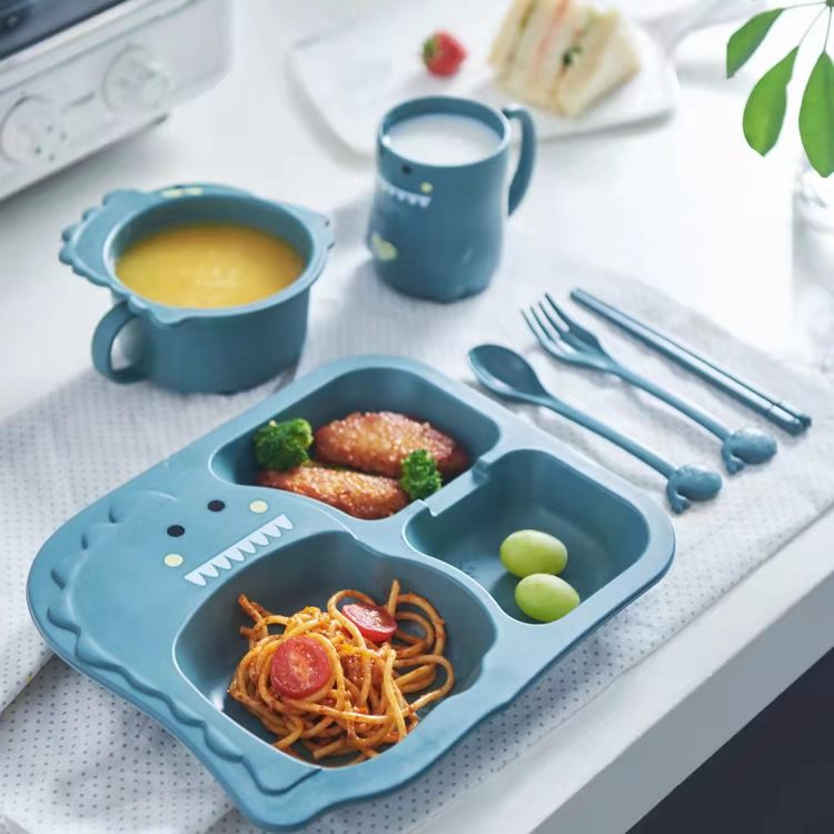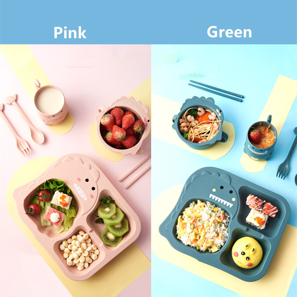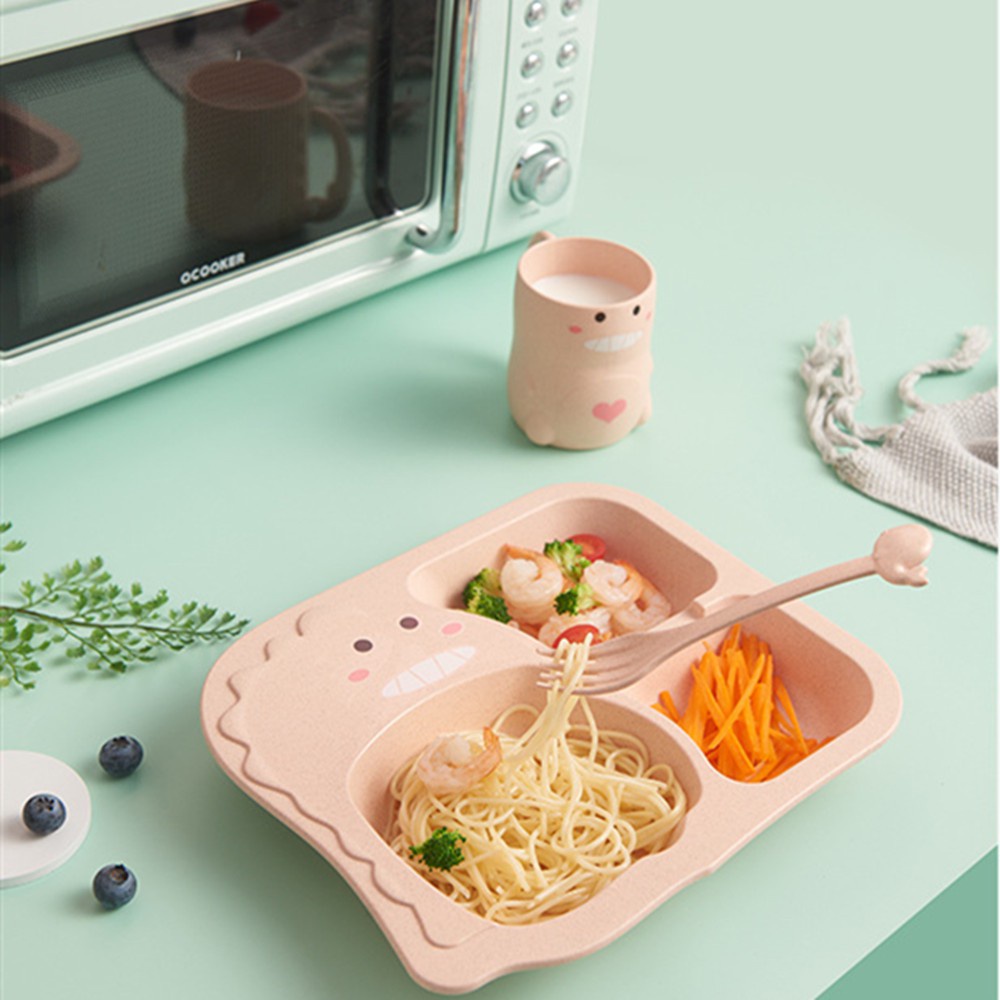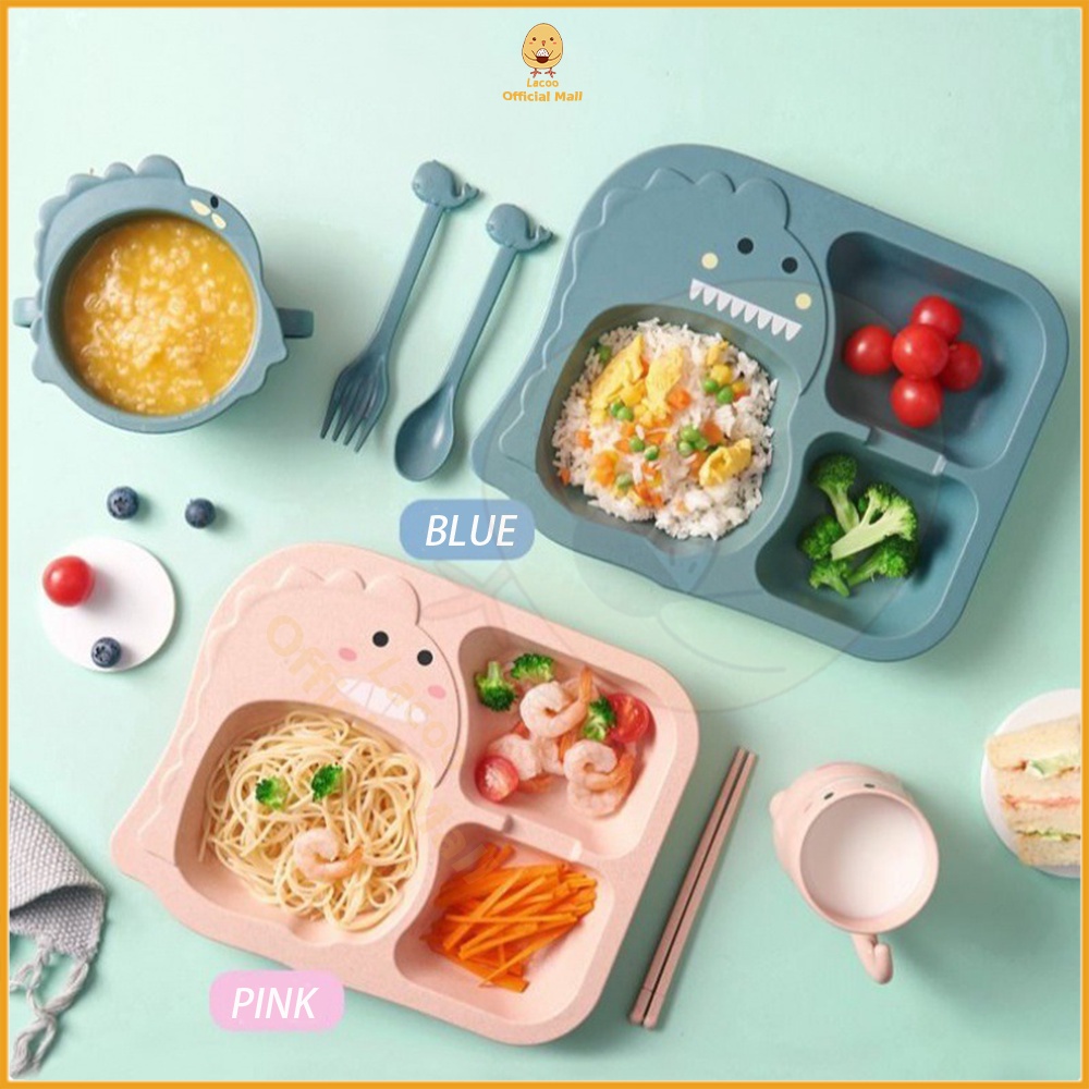 Lacoo Set tempat alat makan bayi Dinosaurus Peralatan piring makan bayi anak BPA Free