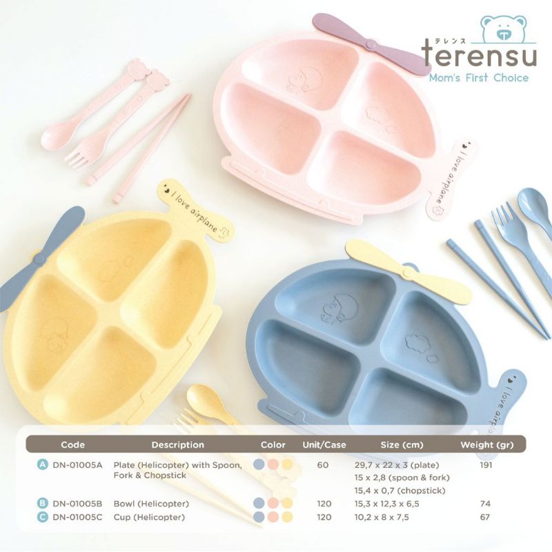 Harga Set Piring Makan Bayi Anak bentuk Helicopter Wheat Sendok Garpu Sumpit