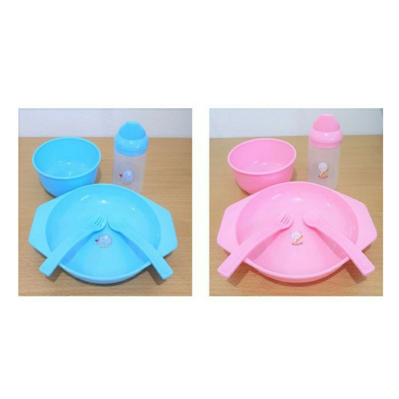Harga Set Tempat makan bayi NINIO BABY Feeding set 5 in 1 dan 3in1 mangkok bayi piring anak belajar makan sendok garbu bayi botol minum botol training baby cup