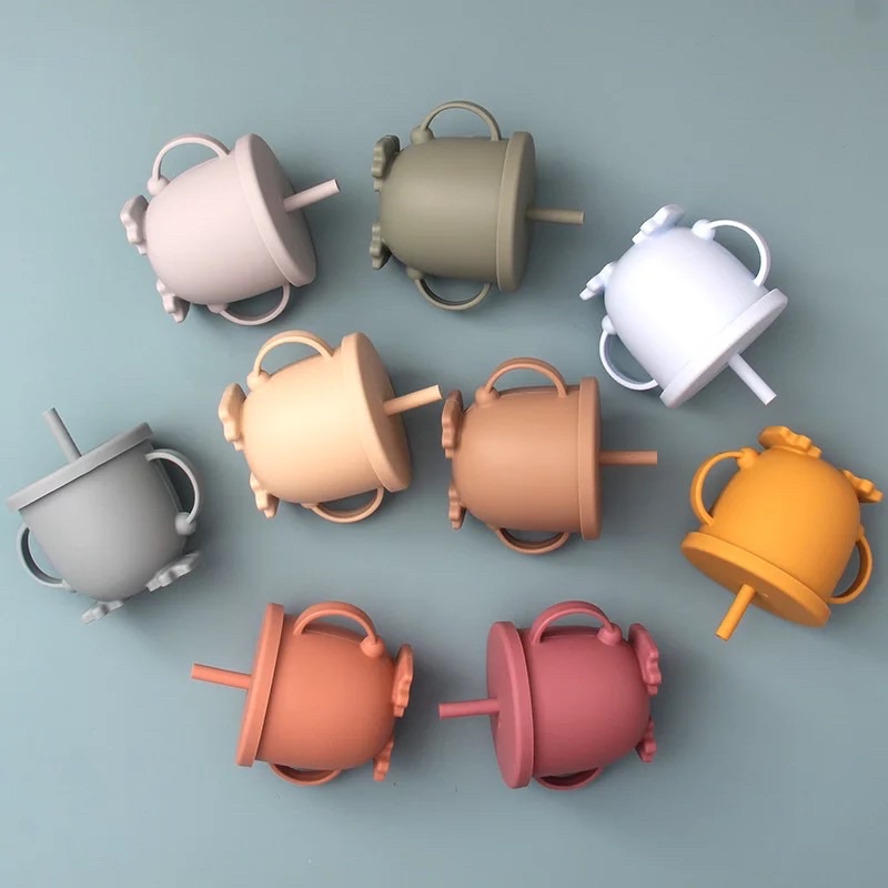 Harga Straw Cup Gelas Silikon Botol Minum Bayi Anti Tumpah / Celemek Piring Mangkok Anti Pecah / Sippy Cup