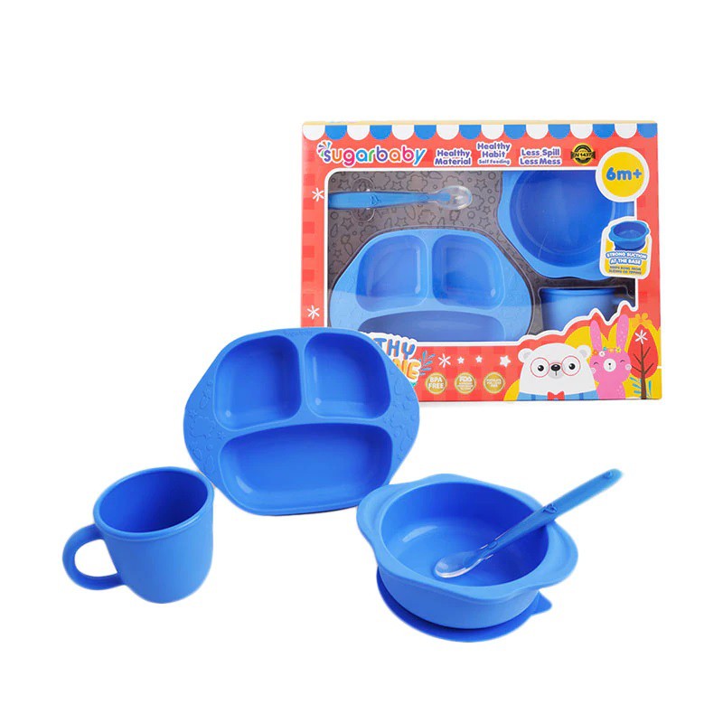 Harga Sugar Baby Healthy Silicone Feeding Set - Piring + Sendok + Mangkok + Gelas Silikon (Isi 4)