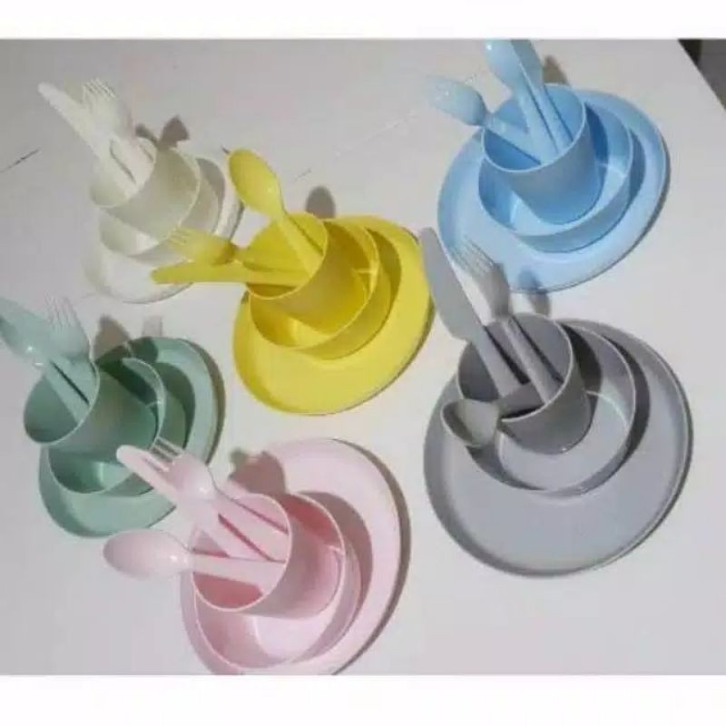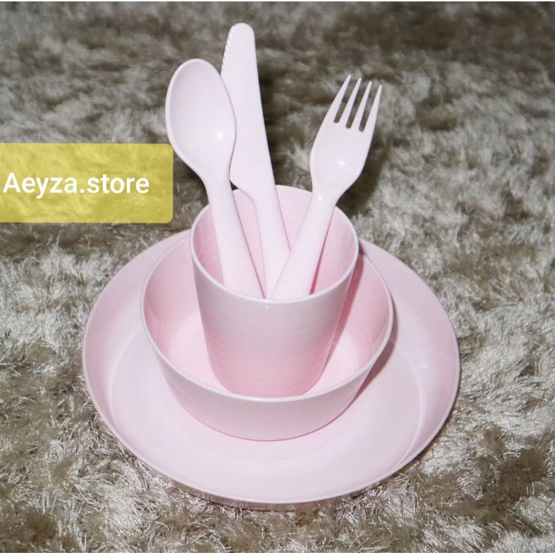Harga Tempat Makan Anak Bayi 1 set Piring, mangkuk, gelas, sendok, garpu, pisau Warna Pastel