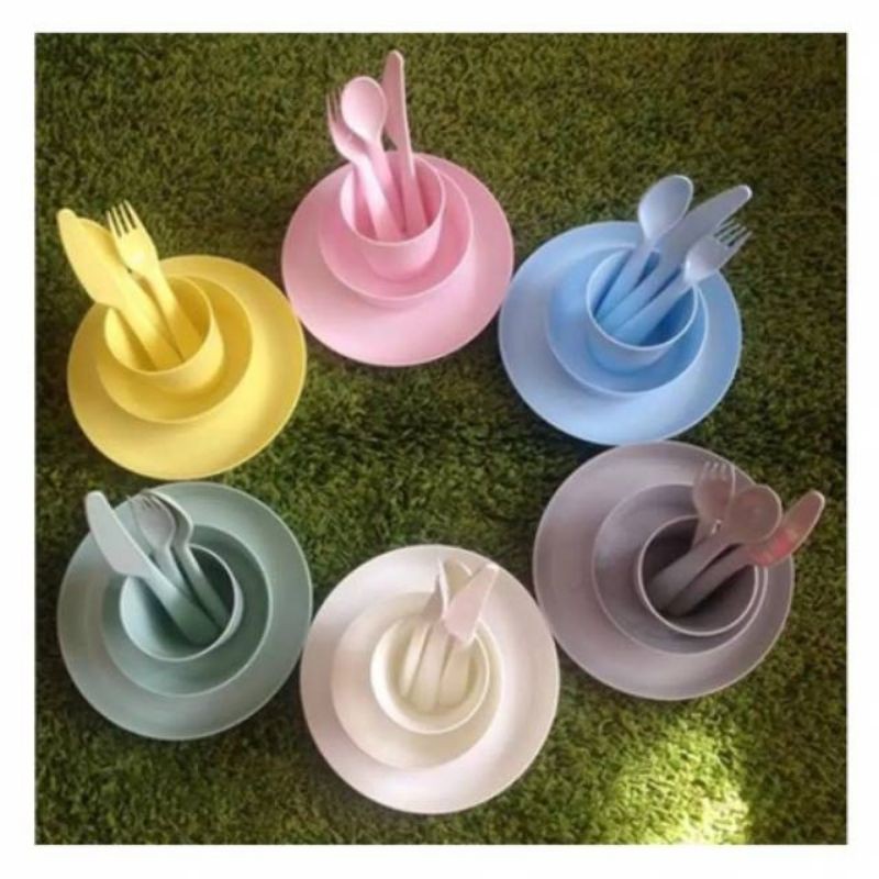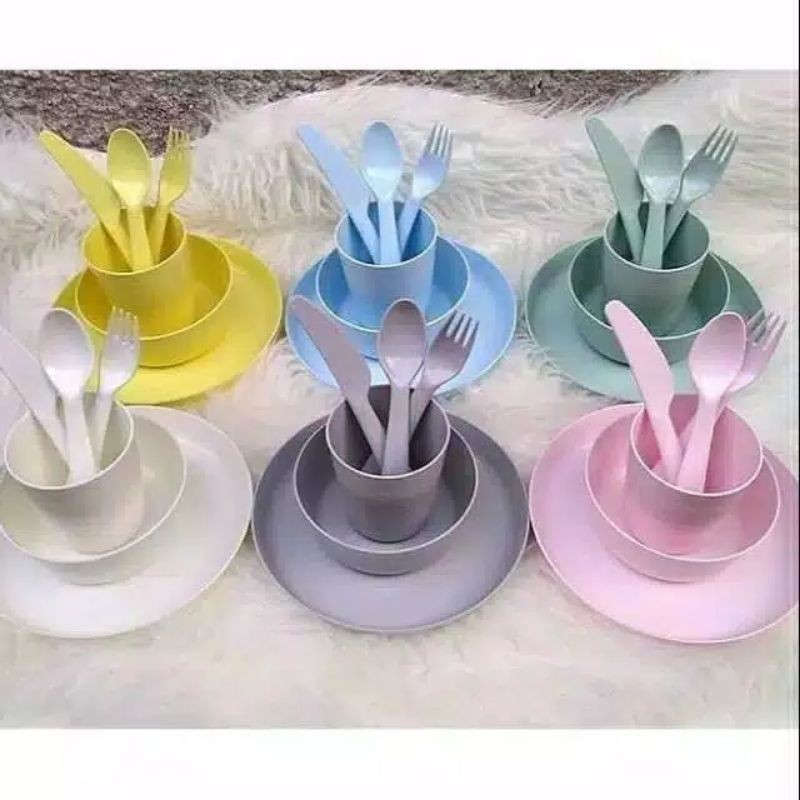 Kelebihan - Kelebihan membeli Tempat Makan Anak Bayi 1 set Piring, mangkuk, gelas, sendok, garpu, pisau Warna Pastel di Toko ini