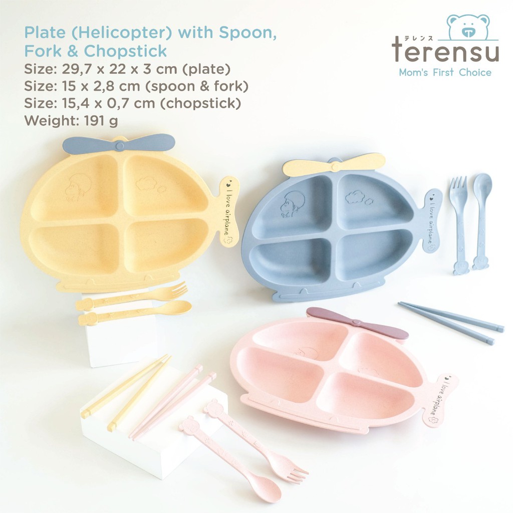 Alasan kenapa harus beli terensu Piring Makan Bayi / Anak + Sendok Garpu Sumpit Motif Helicopter Set Perlengkapan Makan sekarang
