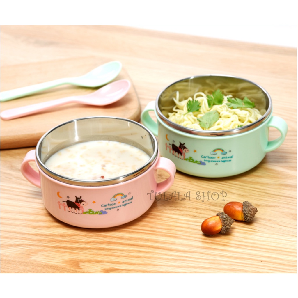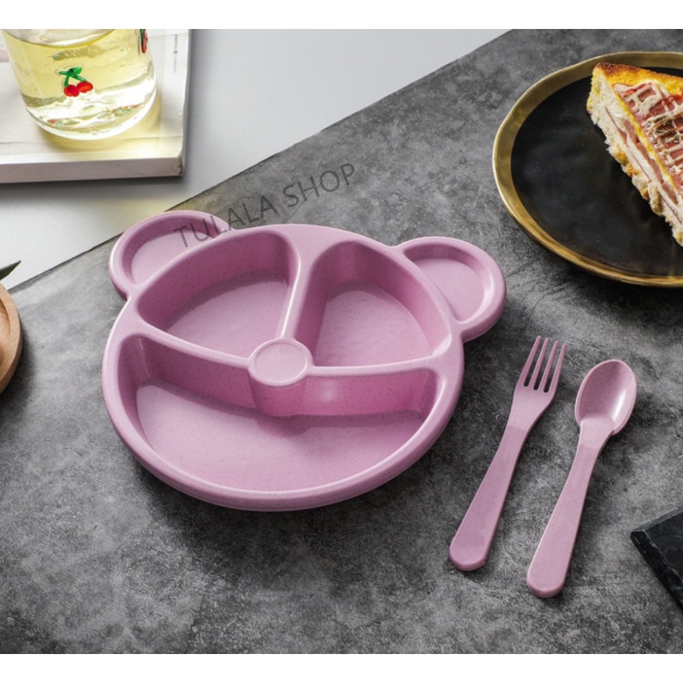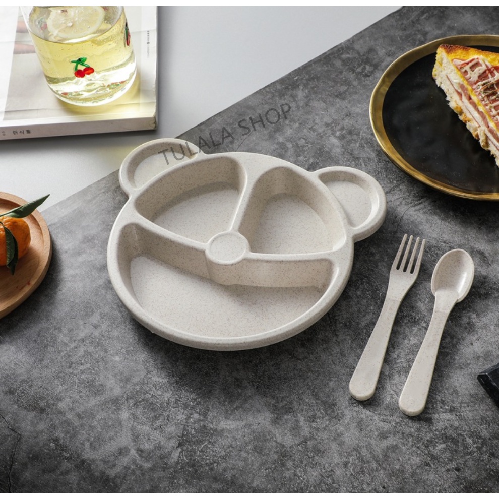 Harga [TULALA SHOP]Setelan tiga potong/Kotak Bekal Makan anak dan bayi/bahan Gandum organik/produk serat/Set piring makan anak-anak dari gandum dibagi kotak