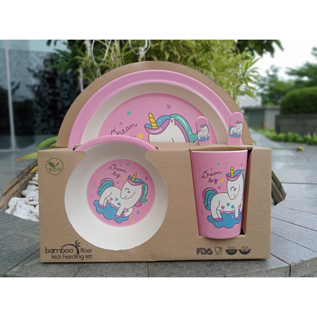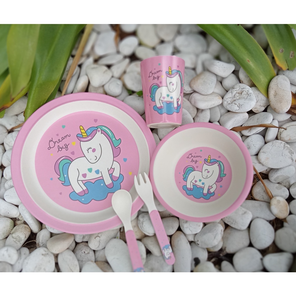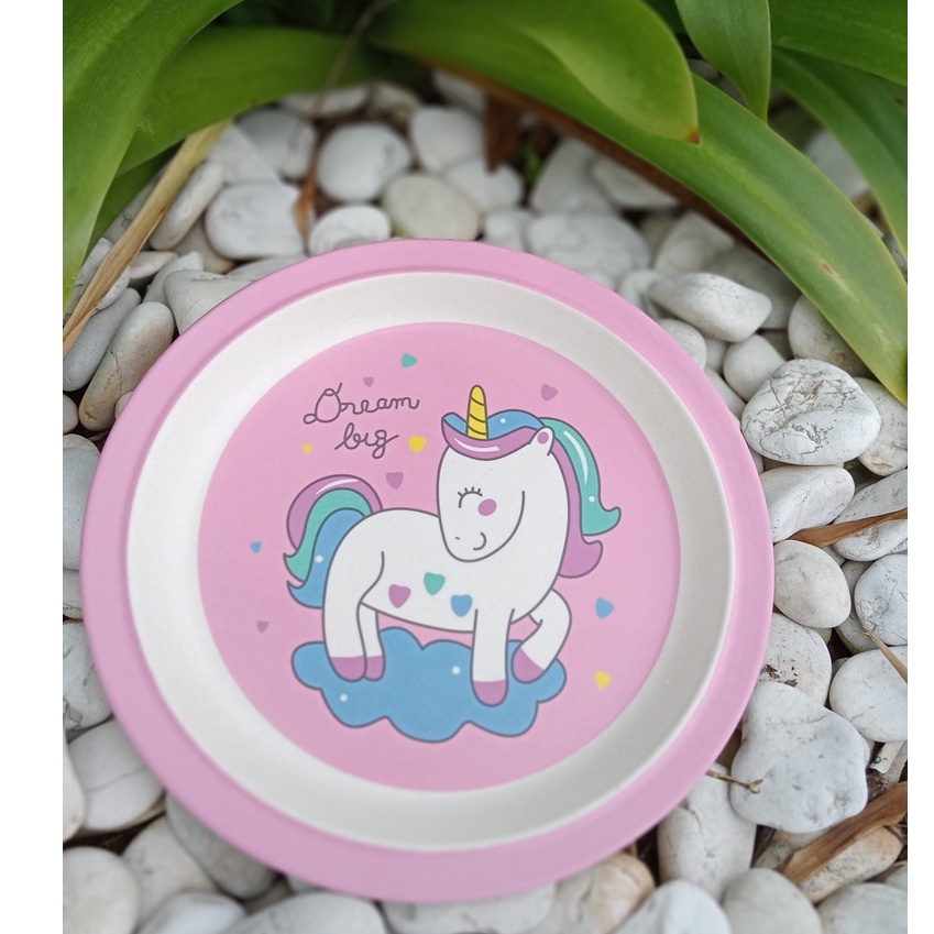 Harga Piring Anak Serat Bambu Unicorn / Piring makan Set Unicorn / Perlengkapan Makan Unicorn / Piring Unicorn Set