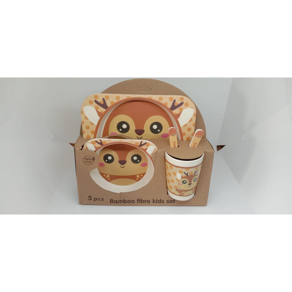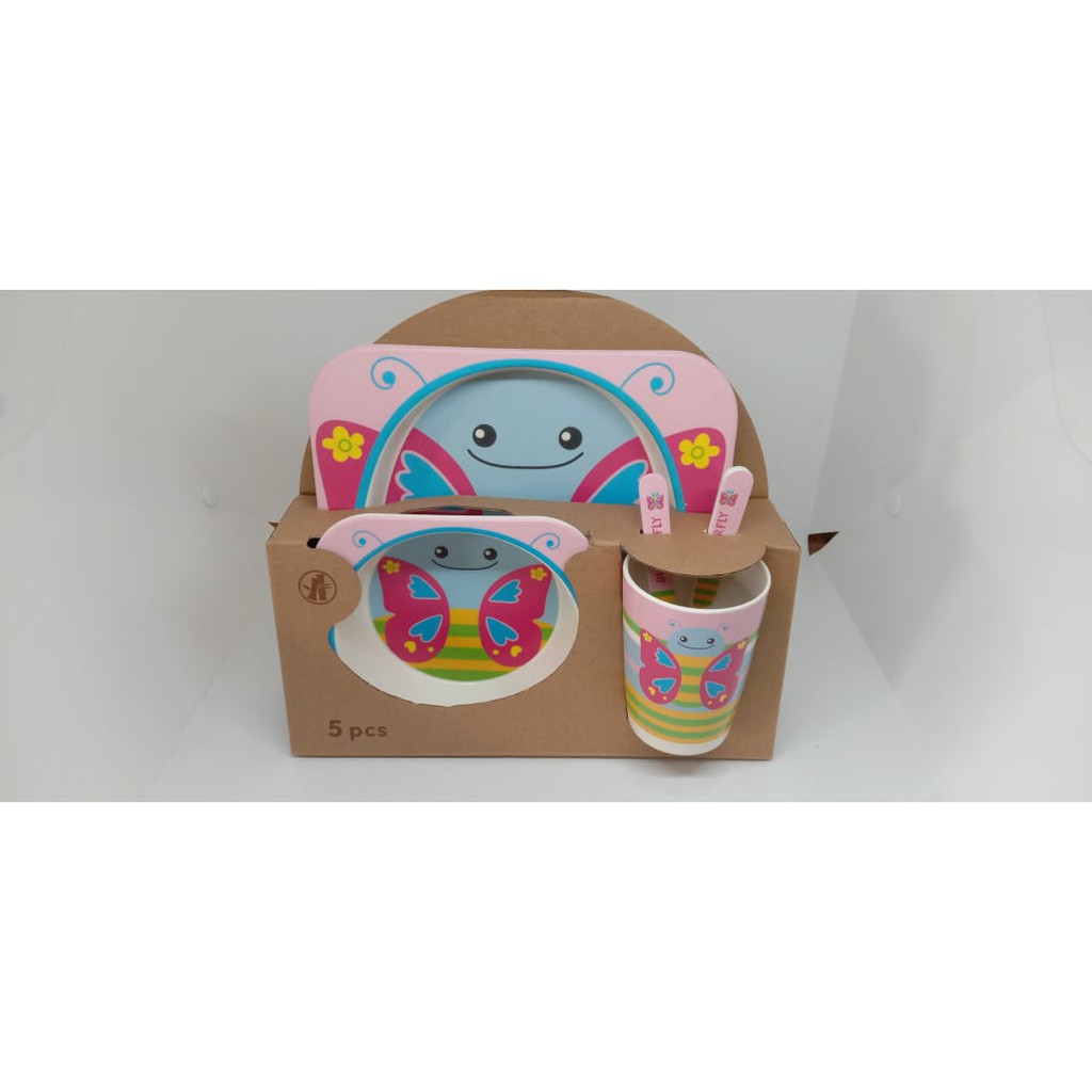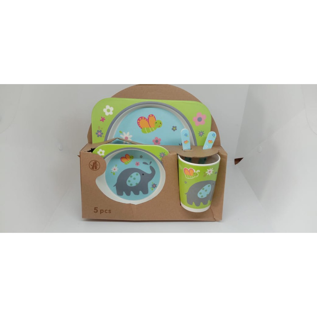 Harga Piring Mangkok Set Makan Anak Bamboo kids set peralatan makan anak serat bambu Souvenir Hampers
