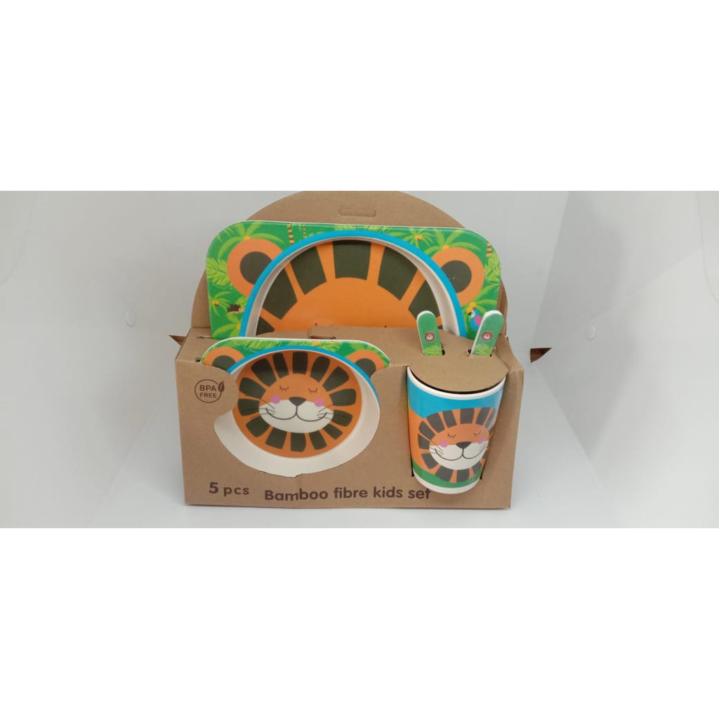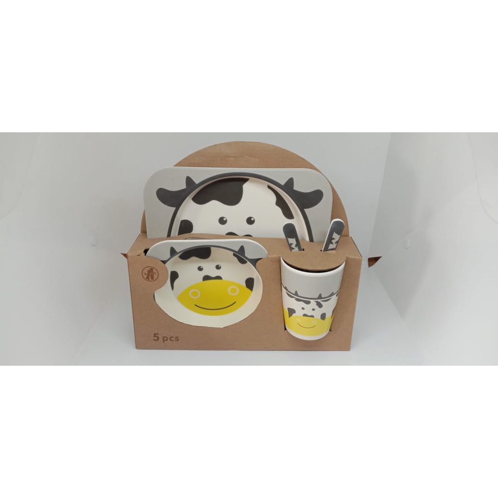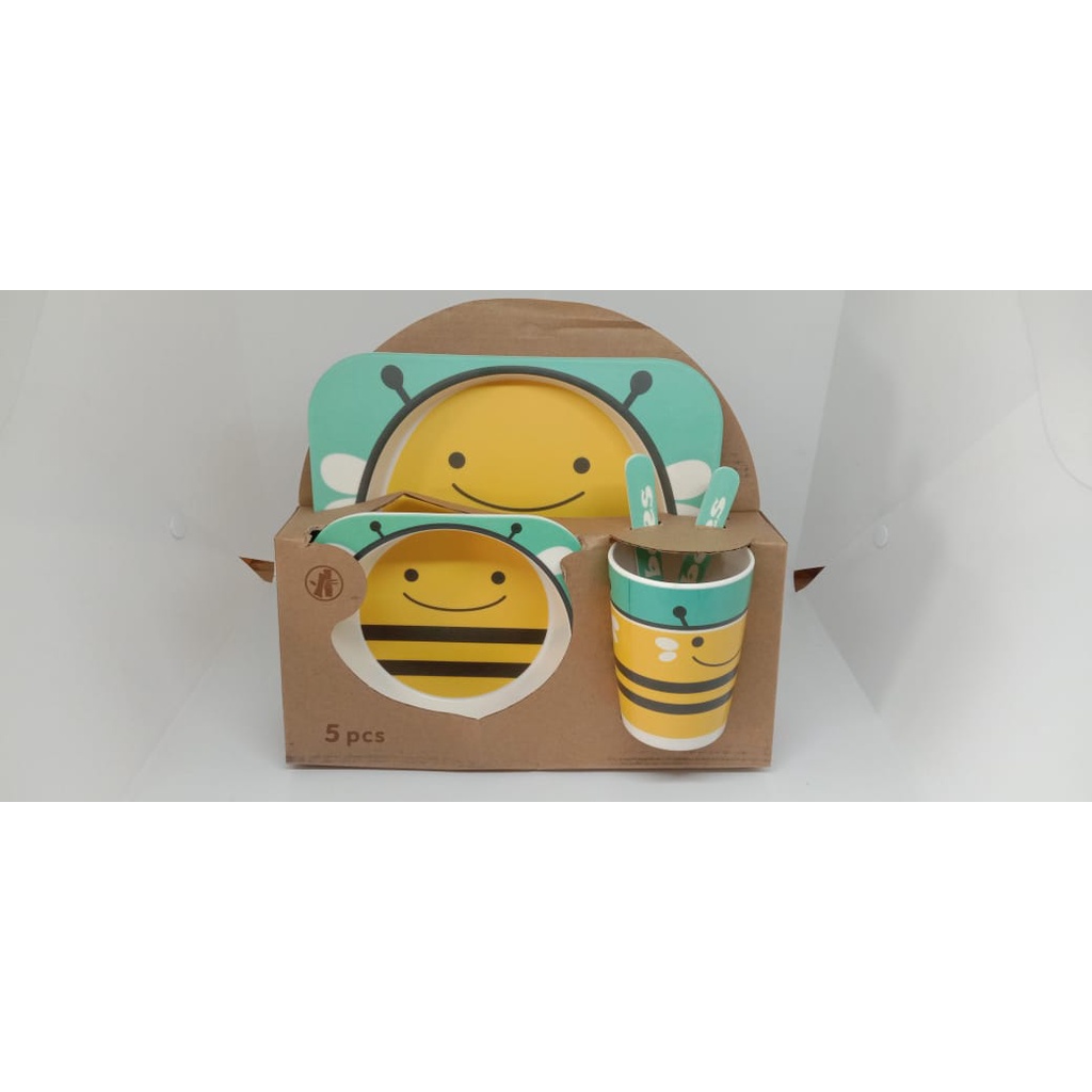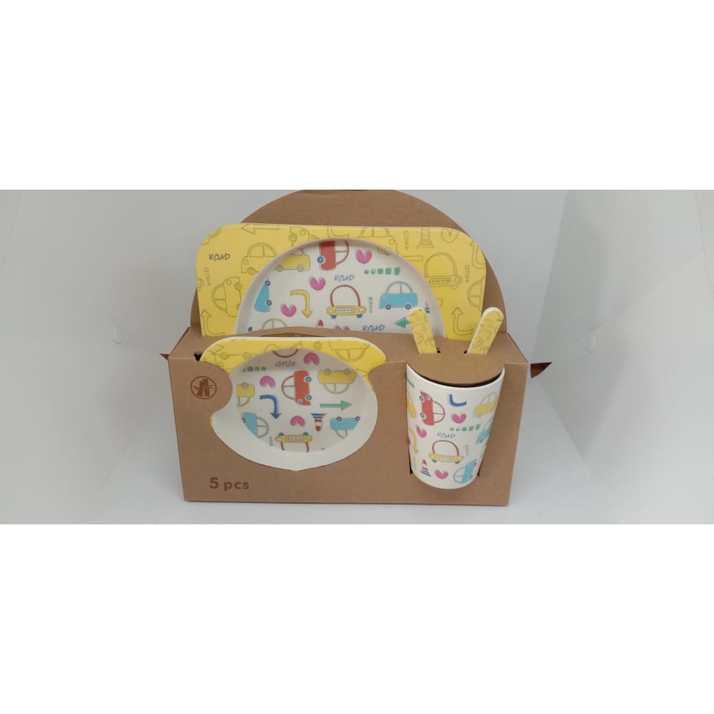 Harga Piring Mangkok Set Makan Anak Bamboo kids set peralatan makan anak serat bambu Souvenir Hampers
