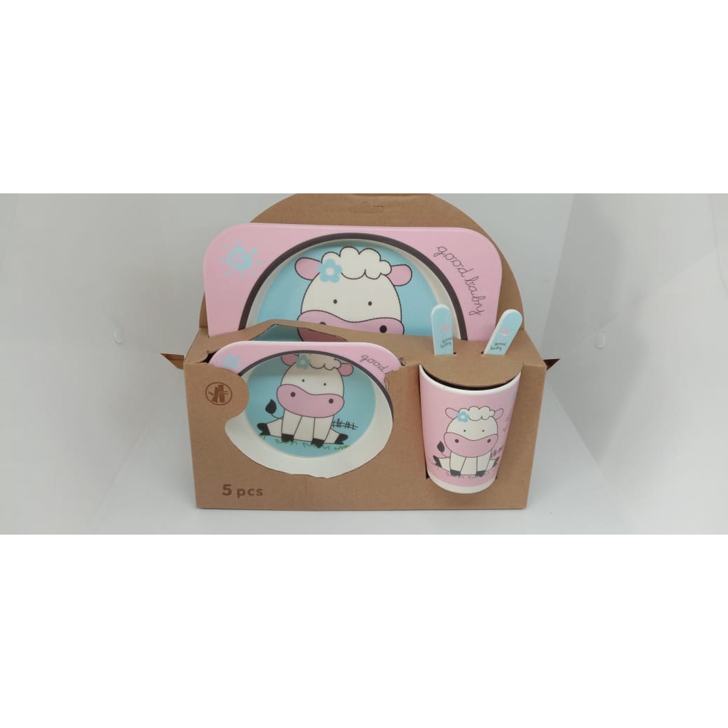 Kelebihan - Kelebihan membeli Piring Mangkok Set Makan Anak Bamboo kids set peralatan makan anak serat bambu Souvenir Hampers di Toko ini